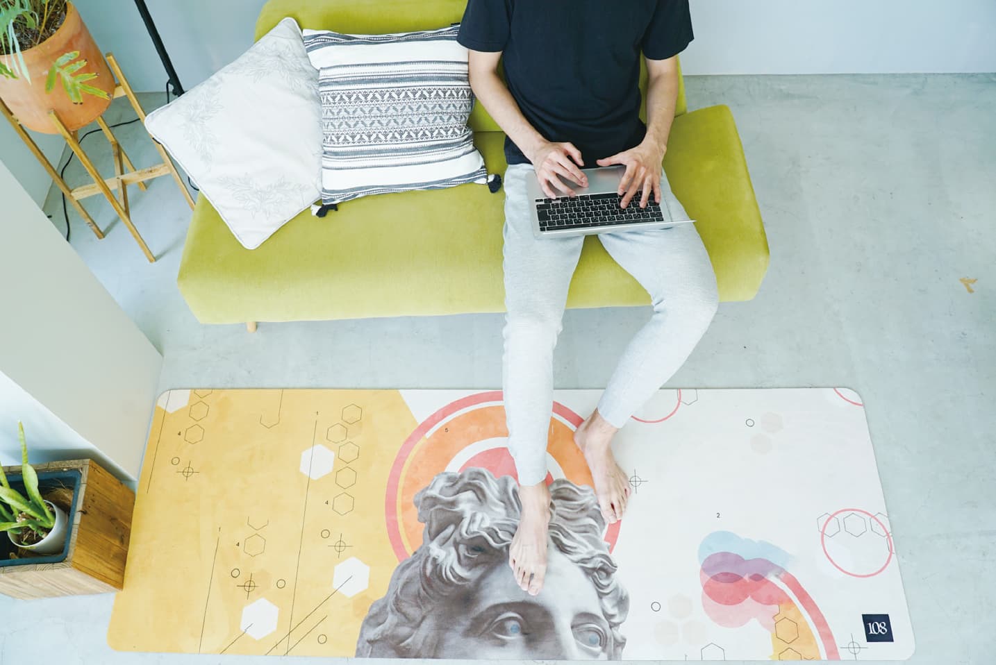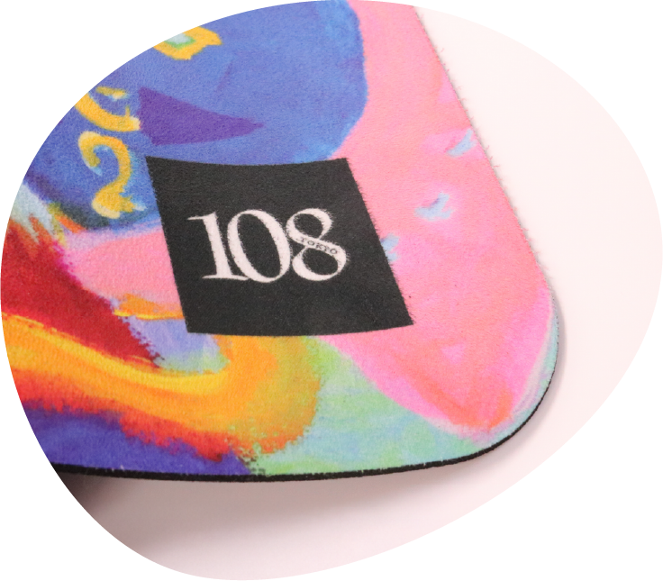 108.TOKYOのヨガマットに社名・スタジオ名を美しく印刷できます。